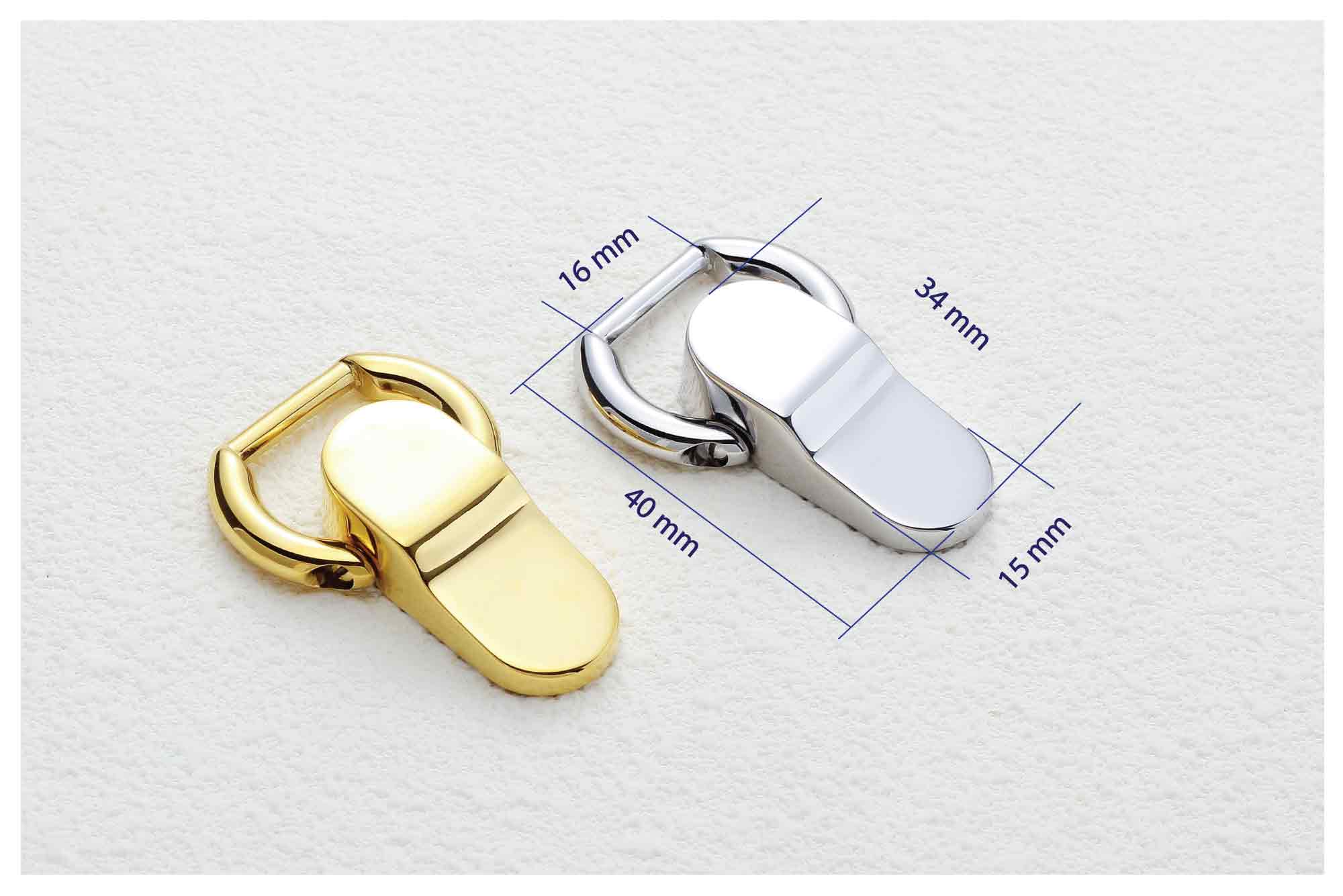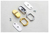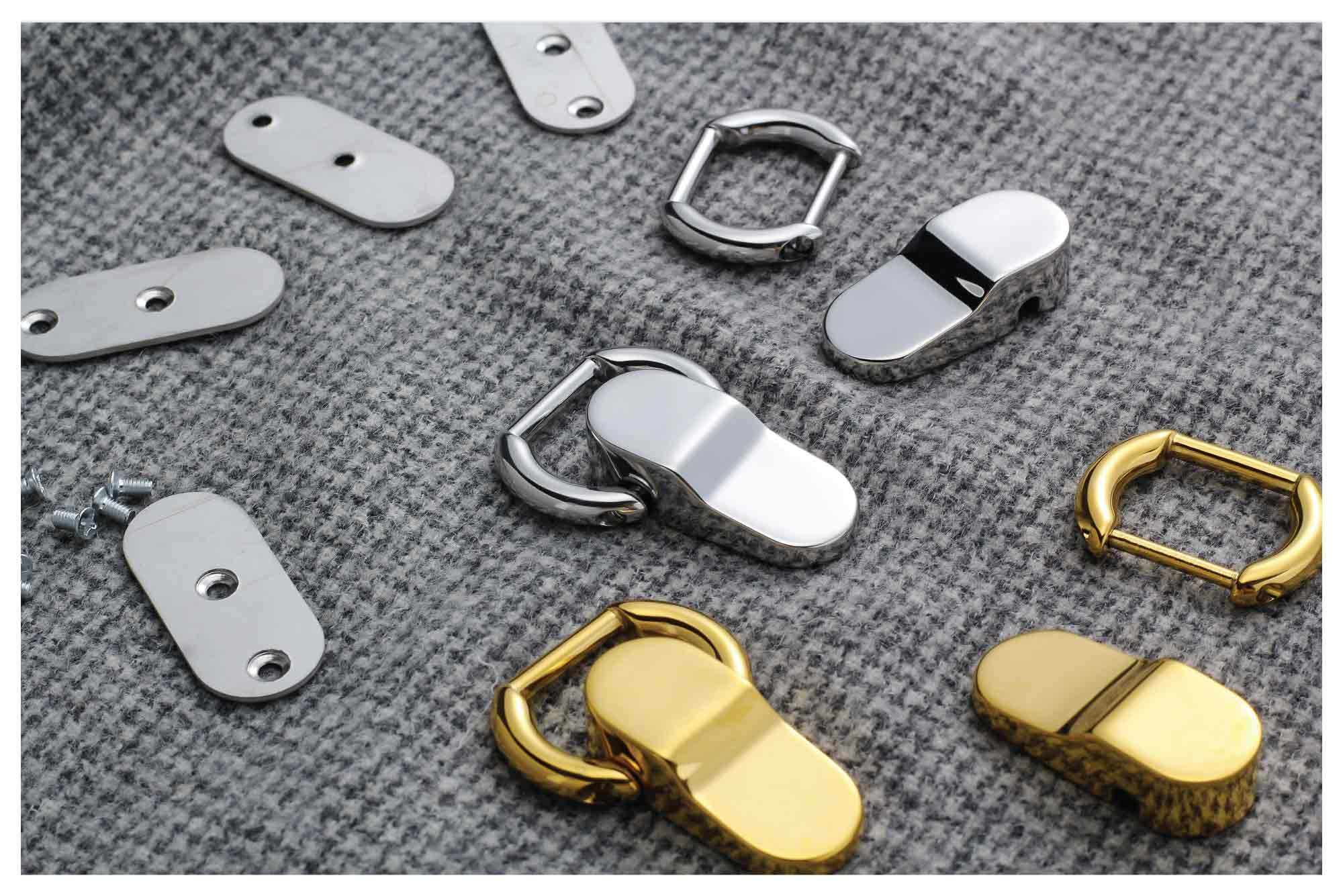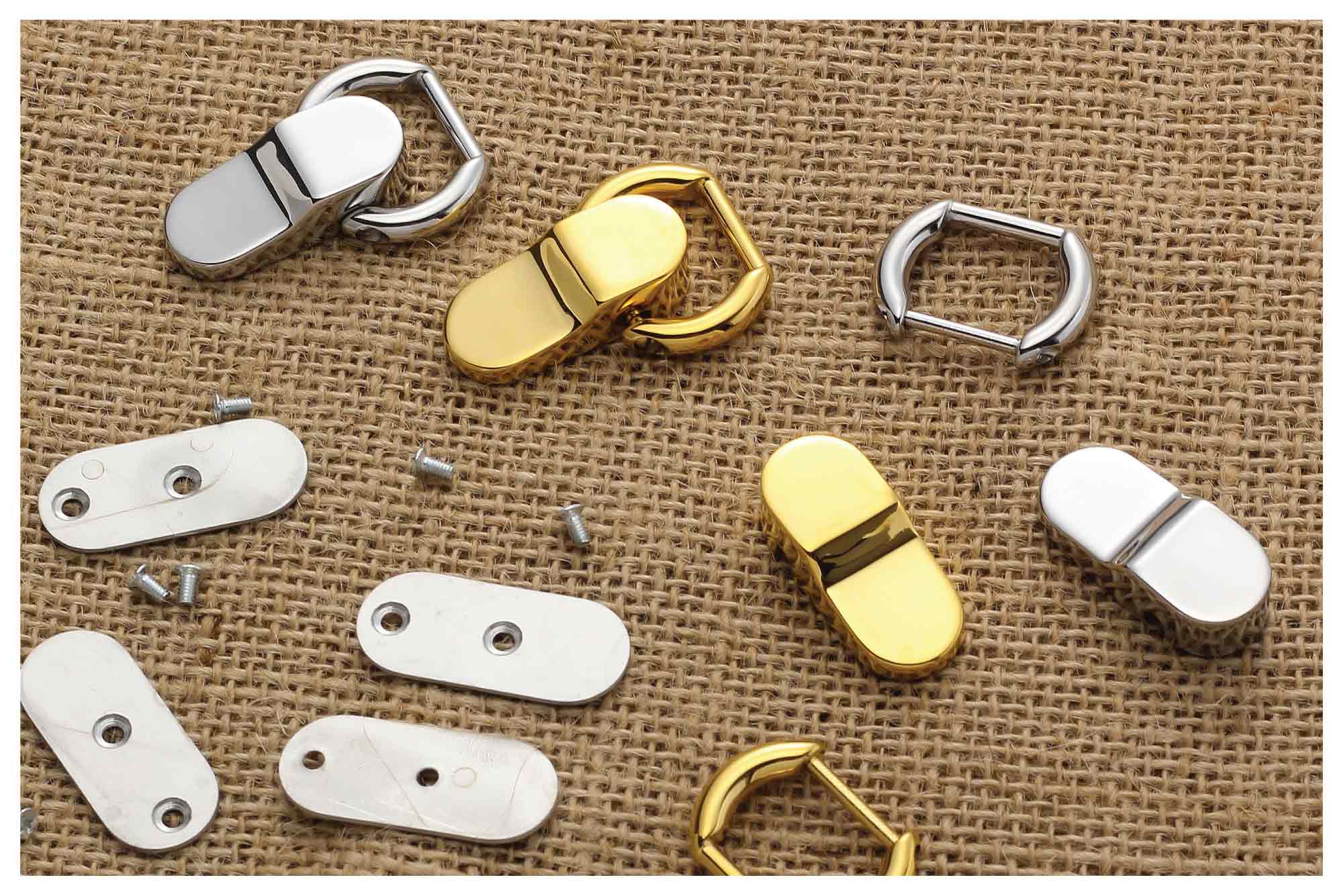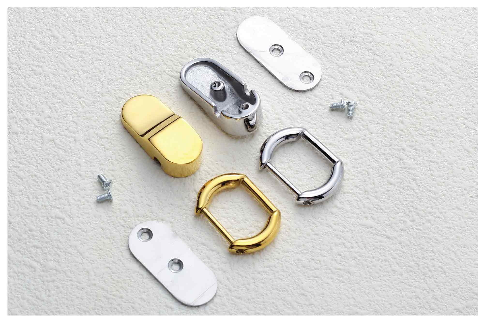 A sophisticated hardware piece designed to effortlessly connect the body of a bag to its handle. Each set includes a matching back plate to ensure secure and seamless installation on the reverse side of the bag.